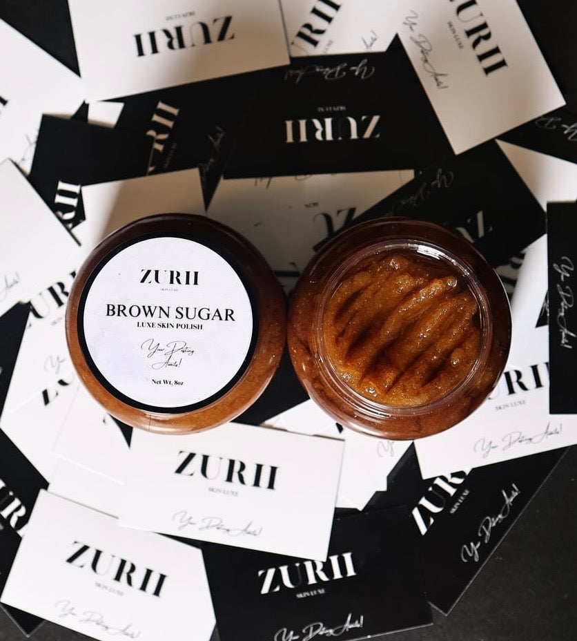 ZURII SKIN LUXE is a Luxury Skin Care Brand, specializing in the most luxurious Sugar Scrubs, known as our “Luxe Skin Polish”. Our mission here at ZURII SKIN LUXE is to provide nothing less than Luxury Service & Luxury Products. We will have an extremely large variety of scents to choose from in our Sugar Scrub Collection, but we will begin by solo re-introducing our BROWN SUGAR Polish to allow our customers to get a sneak peak & luxe feel for what is to come!